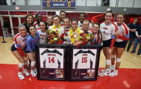 OXFORD, Miss. - Ole Miss volleyball honored seniors Kate Gibson and Lexi Thompson for their record-setting careers Wednesday night at the Gillom Athletics Performance Center and then the duo helped the Rebels defeat South Carolina 3-1 (25-11, 21-25, 25-18, 25-19).