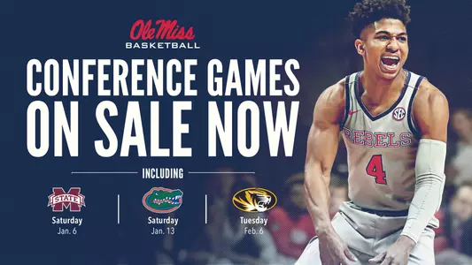 OXFORD, Miss. - Ole Miss Men's Basketball fans can now purchase single-game tickets for Southeastern Conference home games. Tickets start as low as $20 and can be selected on OleMissTix.com.