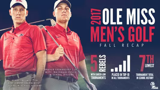 Junior Braden Thornberry led Ole Miss in three out of the four tournaments this fall. He first made his mark in the Rebels' season opener at Shoal Creek where he claimed his eighth individual title, passing Dave Peege for the most individual tournament titles in Ole Miss men's golf history. He then worked in windy Wisconsin to find a tie for fifth, marking the 15th top-five finish of his career. Thornberry didn't stop there, though. The Olive Branch, Mississippi, native went on to defend his FAMC Intercollegiate title, while breaking the tournament record with a 5-under 211. However, in his last appearance, Thornberry failed to find a rhythm, resulting in a tie for 32nd after shooting a 4-under 212.