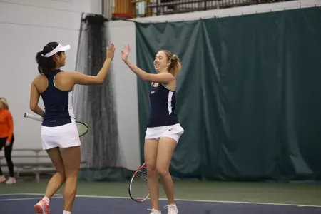 Freshman Anna Vrbenska clinched the win at No. 2 singles 6-0, 6-2 against Sabina Jeresic. Hartono and Zalina Khairudinova provided the last two points in straight sets for the 6-0 score.