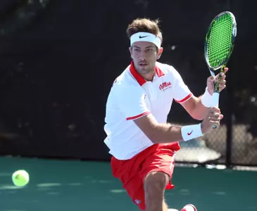 STARKVILLE, Miss. -- Less than 24 hours after taking the doubles point at No. 15 Mississippi State and having the match postponed due to rain, the Ole Miss men's tennis team came back out Sunday morning and earned the necessary three singles wins for a 4-2 victory at the A.J. Pitts Tennis Centre.