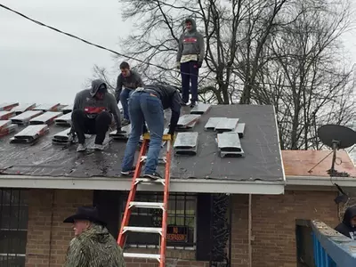 Since the Rebels were there, the Mississippi Delta Community College football players were able to finish up the roofs at both Fountain and Fedrick's homes.