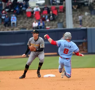 OXFORD, Miss. - In the rubber match of a Southeastern Conference series, the Ole Miss baseball team scored nine runs in the first four innings on its way to a 9-6 win over Missouri Sunday afternoon at Swayze Field. The Rebels (25-15, 9-9 SEC) used a three-run first and a five-run fourth to jump out to a 9-1 lead before holding off the Tigers (27-14, 8-10) late.