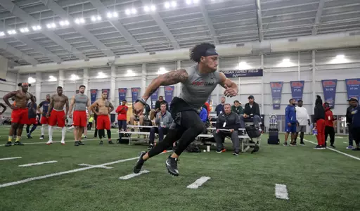 OXFORD, Miss. - A total of 48 scouts from 31 NFL teams converged at the Manning Center on Monday morning to see former Rebel football players put on an athleticism showcase with the hope of bolstering their professional stock.