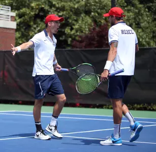 Both teams were making their NCAA doubles debut, but Fallert and Hamilton needed only two sets to dispatch the Butler team of Mason Dragos and Mikheil Khmiadashvili in the first round. At 4-4 in the first set, the Rebs broke to go up 5-4 and then Hamilton served it out for 6-4. Fallert and Hamilton secured a break to start the second set and never looked back, winning it 6-3 to move on.