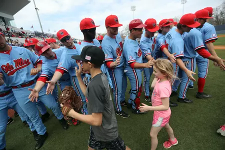Minutes before the game began, Alexa and Layla joined Luke out on the mound for the ceremonial first pitch. Luke stepped up to the mound in his Vanderbilt hat and Ole Miss t-shirt, throwing a strike right down the middle. They were welcomed back from the field by both teams with high fives and emotional embraces. For the National Anthem, the Farese children joined their father's alma mater along the first base line. It was a special moment where two teams put aside the competition on the field and worked together to create a special day for the three children.