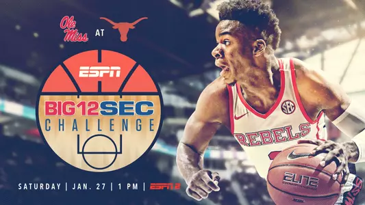 BIRMINGHAM, Ala. - The Ole Miss men's basketball team will battle the Texas Longhorns at 1 p.m. CT, Jan. 27, 2018, on ESPN2 as part of the Big12/SEC Challenge Presented by Sonic. ESPN announced the television network designations and start times for all 10 games of the fifth annual competition Wednesday afternoon.