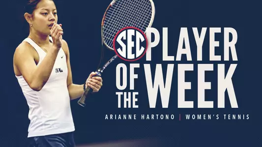 BIRMINGHAM, Ala. - Ole Miss women's tennis senior Arianne Hartono has been named the SEC Player of the Week, the conference office announced Wednesday.