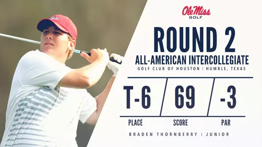 Braden Thornberry was the leading force for the Rebels in the second round after working a 3-under 69 for the second day in a row. This score was made up of 15 pars and three birdies. He is now in contention heading into the final round as he sits in a three-way tie for sixth place.