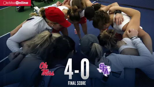 OXFORD, Miss. - In their final non-conference match before Southeastern Conference play, the No. 3-ranked Ole Miss women's tennis team shut out Stephen F. Austin 4-0 Saturday afternoon at the Ole Miss Indoor Tennis Center to improve to 9-1.