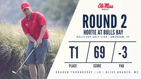 Eighteen holes remain in the Hootie at Bulls Bay. The Rebels will tee off beginning at 7:50 a.m. CT Tuesday morning, six strokes back with a chance to still claim the title. Individually, Thornberry will start his round as the co-leader in search of becoming the first player in school history to reach double figures in medalist honors. He already holds the program standard with nine individual wins.