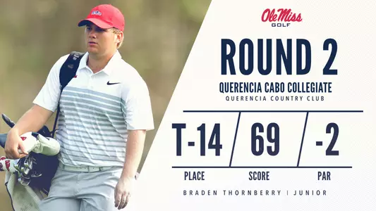 CABO SAN LUCAS, Mexico- The Ole Miss men's golf team held onto ninth place after a 6-over (290) day, one stroke better than its opening round at the Querencia Cabo Collegiate. Ole Miss is tied with Rice, who fell three places from their first round, in Mexico. No. 1 Oklahoma State continues to lead the field after a 2-under (282) day to sit at 10-under overall.