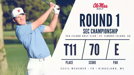 ST. SIMONS ISLAND, Ga. â€" Wind off the coast played havoc on day one of the SEC Championship at Sea Island Golf Club's Seaside Course, but Cecil Wegener kept a level head in his conference tournament debut. The freshman fired an opening round 70 (E) to lead the Ole Miss men's golf team on the first of three days of stroke play.