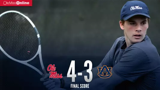 AUBURN, Ala. -- In his first test as a Rebel, Ole Miss men's tennis freshman Finn Reynolds aced it, clinching a 4-3 win on the road at Auburn Friday night at the Yarbrough Tennis Center.