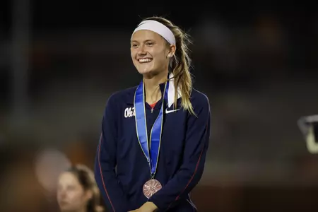 Junior Maddie McHugh completed the trifecta of Rebel women's bronze medals on Day Three, finding her way to the podium in the 800-meter for the second-straight conference meet. After snagging the bronze medal in dramatic fashion indoors, McHugh put forth a drama-less performance today instead, finishing third at a season-best 2:05.54 (No. 17 East, No. 30 NCAA). McHugh showed some impressive closing speed, clipping off a 61 on her final lap to stick with the winners, Texas A&M national title caliber 800-meter runners Sammy Watson (2:03.37) and Jasmine Fray (2:03.55).