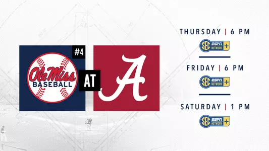 OLE MISS (40-13, 16-11 SEC) at ALABAMA (26-27, 7-20 SEC) May 17-19 Tuscaloosa, Ala. Sewell-Thomas Stadium (8,500) |