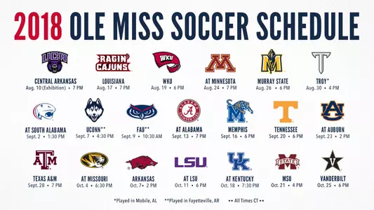 OXFORD, Miss. - Signifying that the start of the fall season is quickly approaching, Ole Miss soccer head coach Matt Mott announced the Rebels' schedule for the 2018 season on Friday.